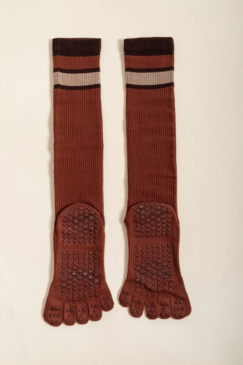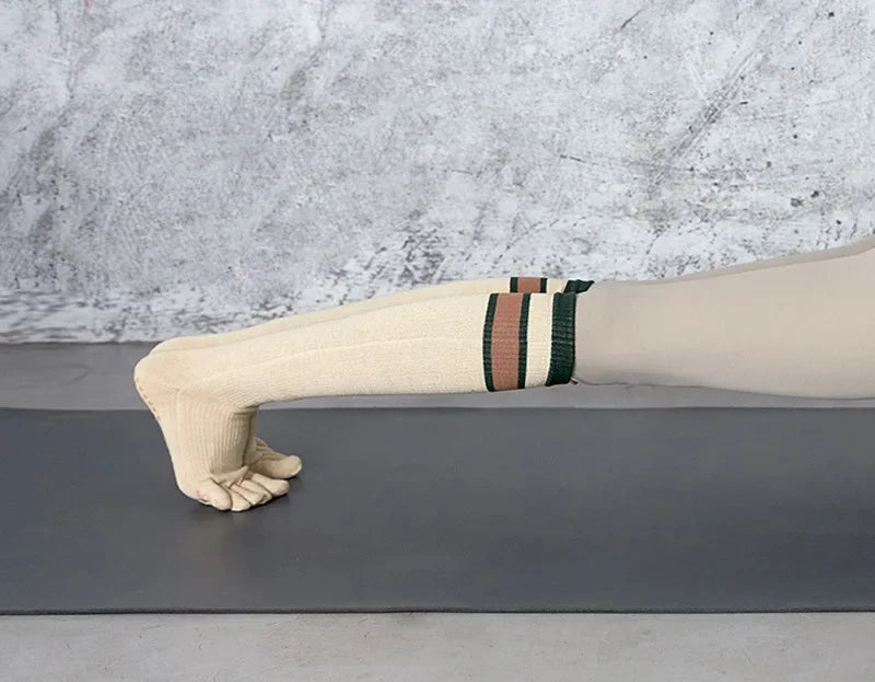 Pilates Yoga Socks Women Five Toes Cotton Long Socks Stockings Professional Silicone Anti-slip Floor Fitness Dance Sports Socks